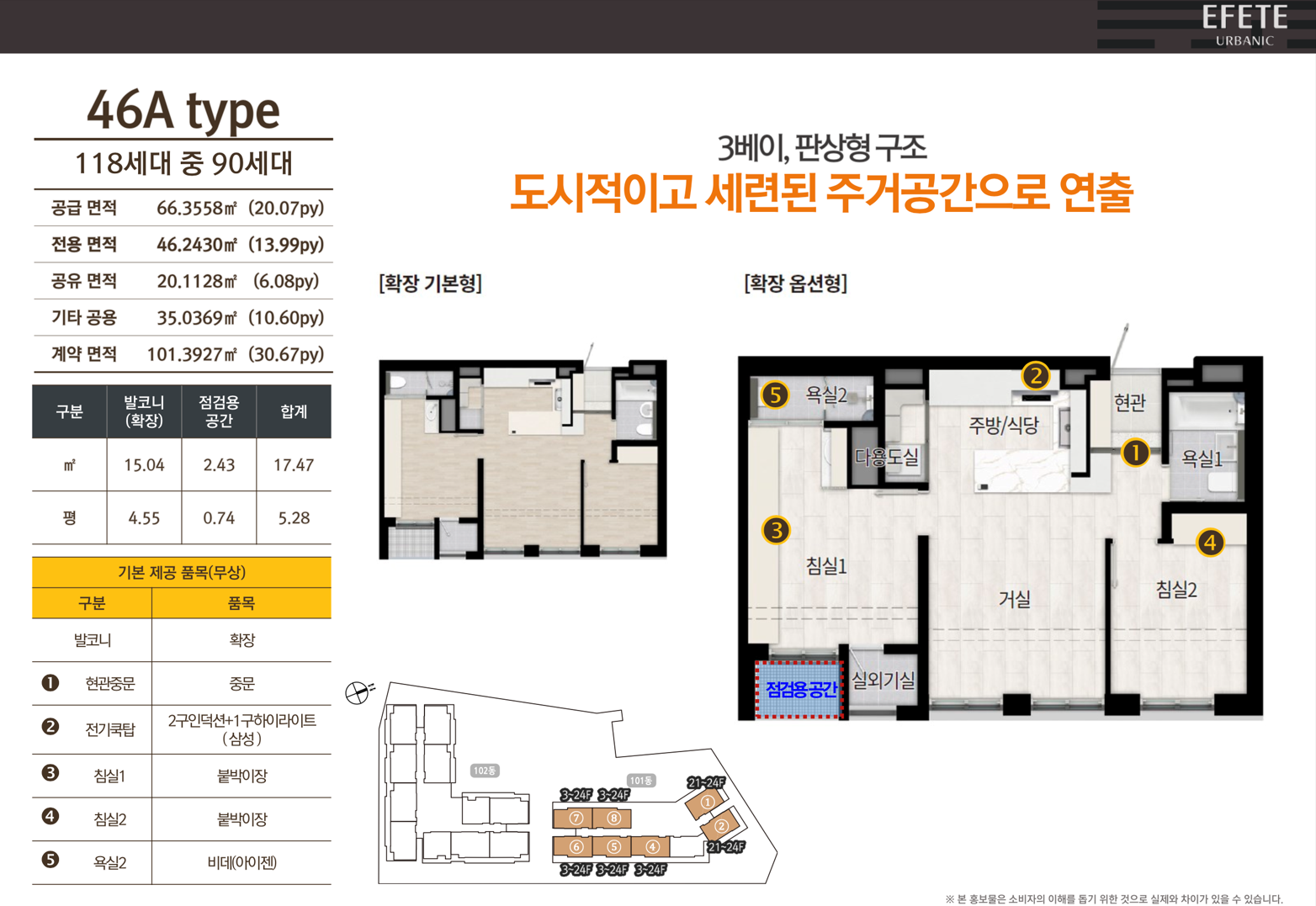 전용면적 34~46㎡ 아파트 198가구와 전용면적 42㎡, 59㎡