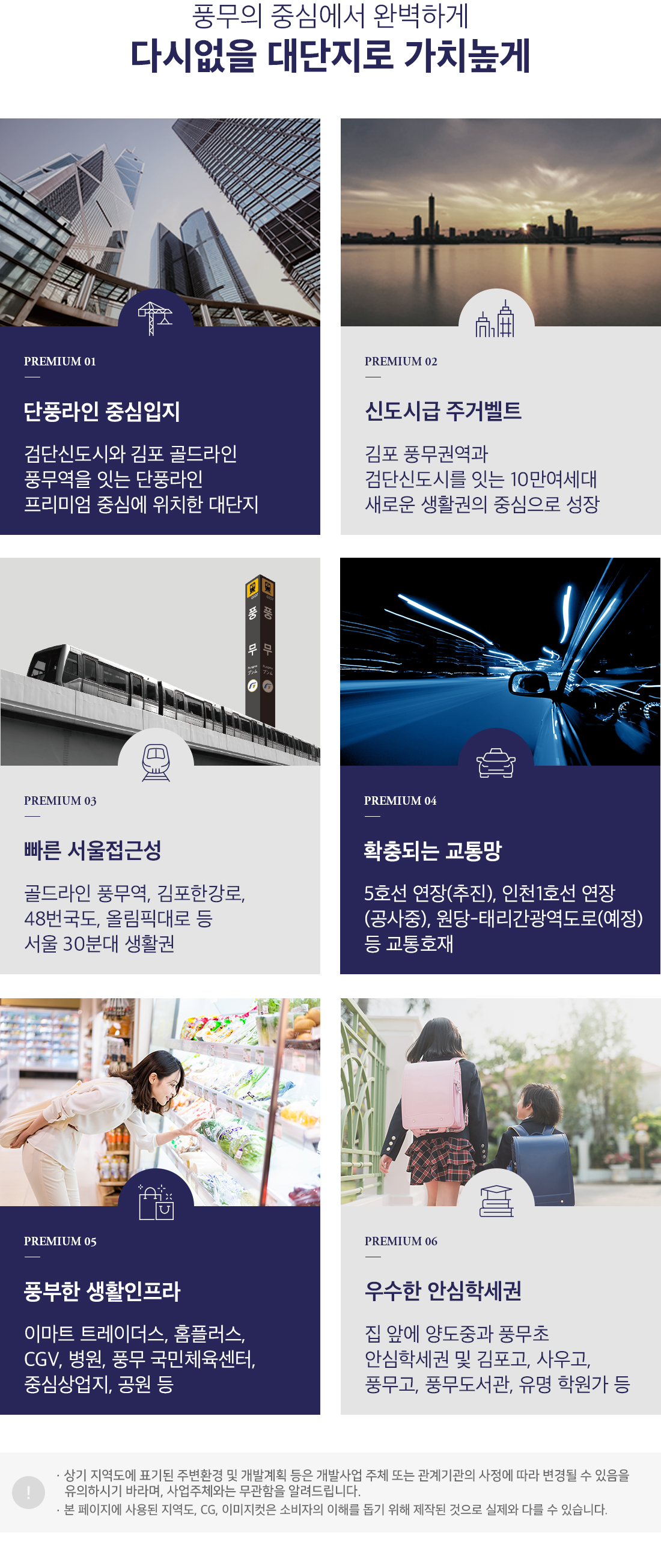 단지는 풍무동 일대 생활 편의시설과 교육환경, 자연환경을 동시에 갖춘 것이 특징이다. 풍무이마트와 롯데몰 김포공항, 김포시청이 인접해 있으며 풍무초와 중고교가 도보권에 있어 교육환경이 우수하다. 또한 장릉산 근린공원과 한강시민공원 등 자연환경이 가까워 쾌적한 주거 여건을 제공한다.