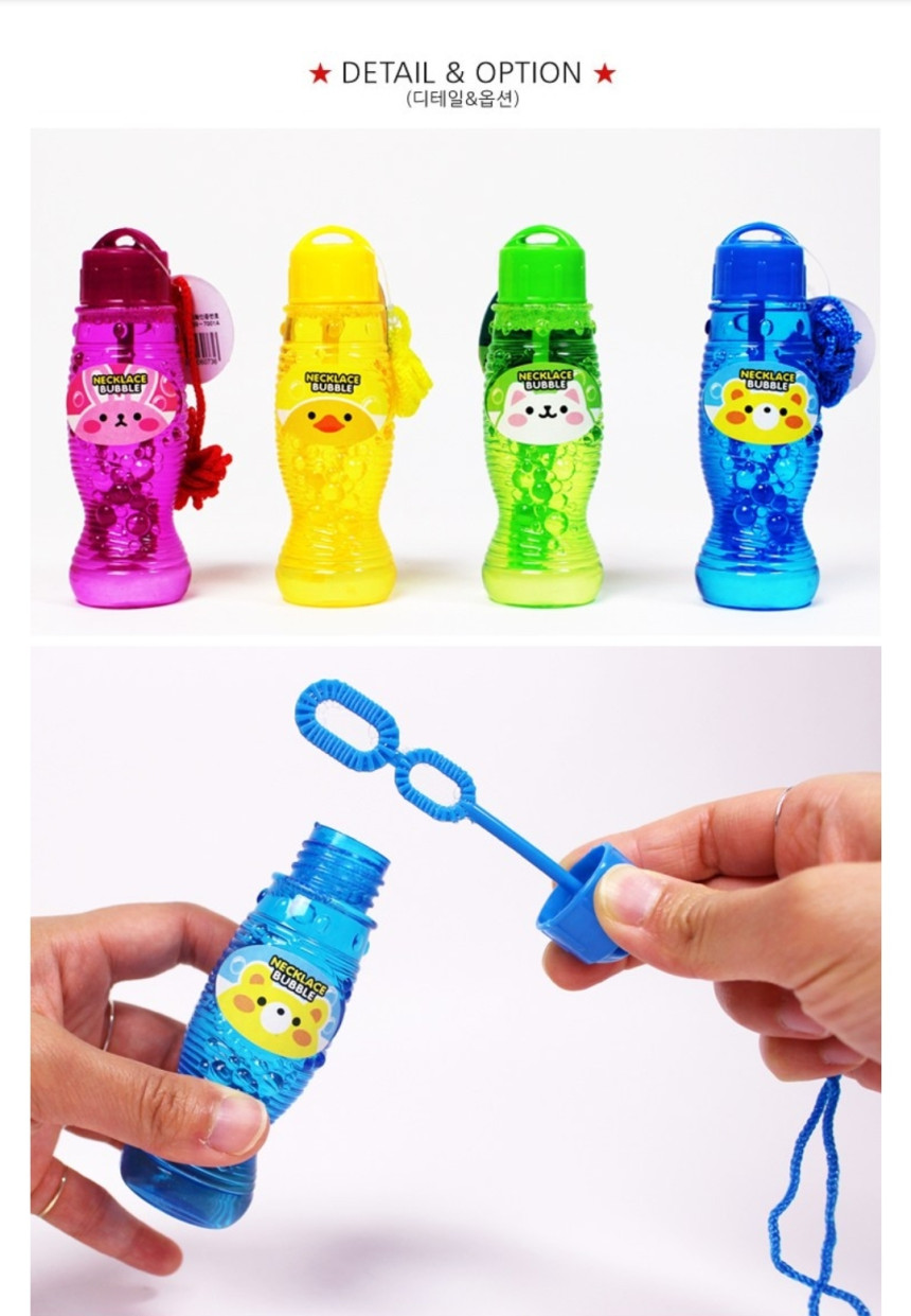 끈을 목에 걸고 비눗방울놀이가 가능해요.