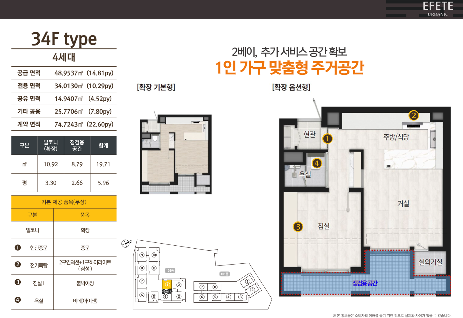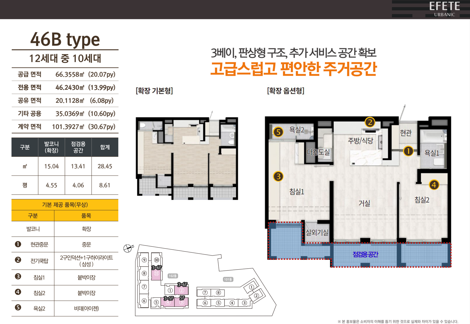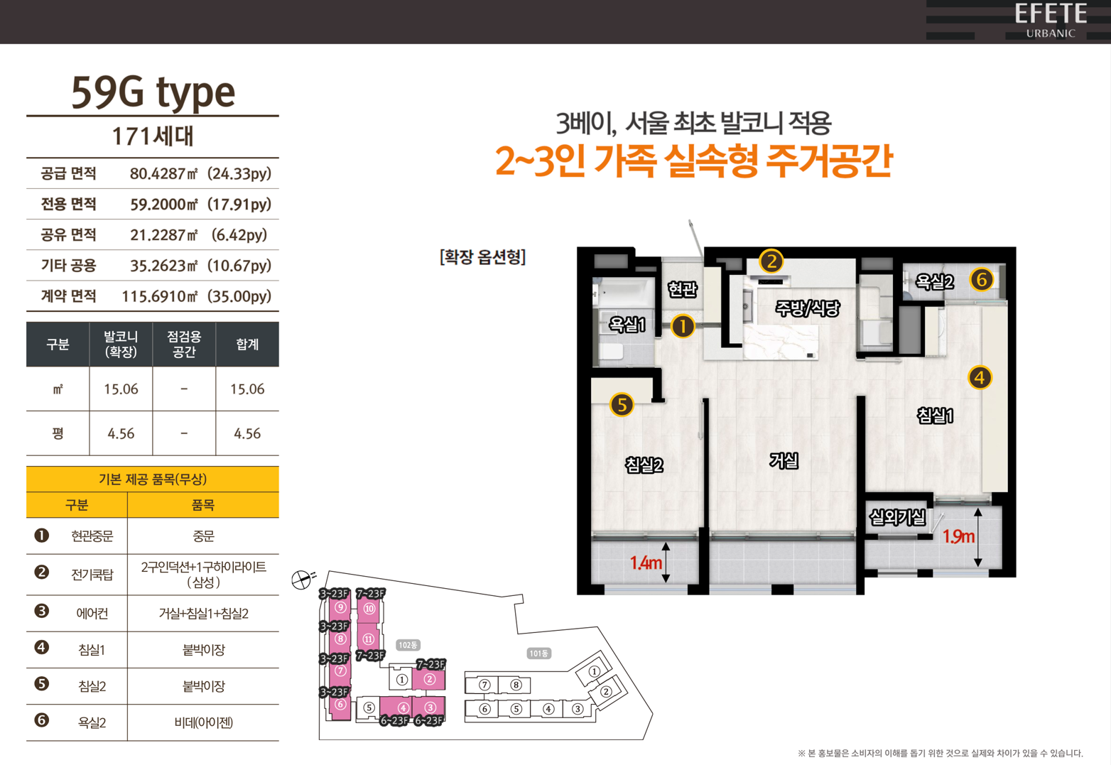 전용면적 34~46㎡ 아파트 198가구와 전용면적 42㎡, 59㎡