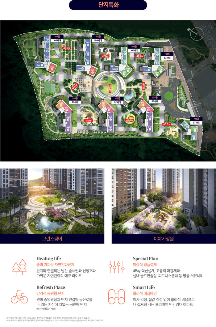 단지는 남향 위주의 배치로 채광과 통풍을 극대화하였으며 혁신적인 평면 설계로 공간 활용도를 높였다. 단지 내에는 피트니스 센터 어린이집 커뮤니티 시설과 산책로 등 입주민 편의를 위한 다양한 시설이 마련된다.