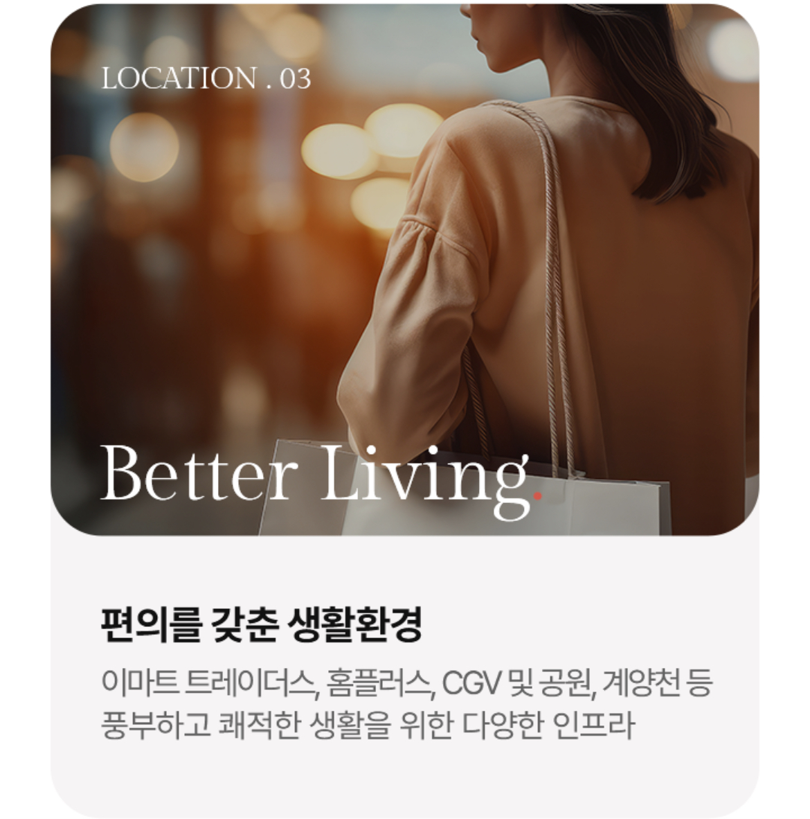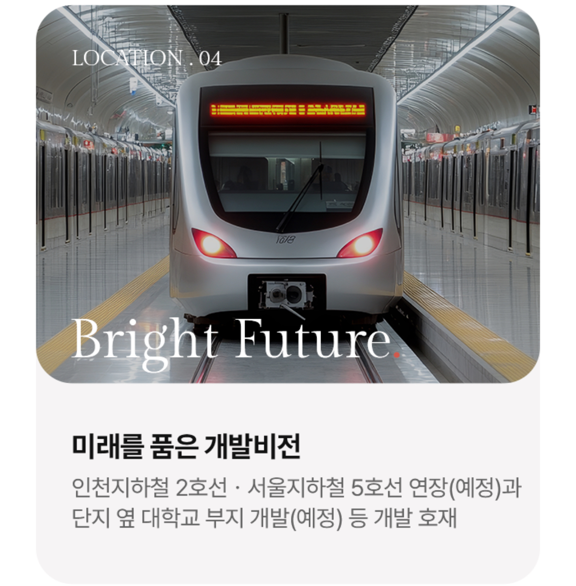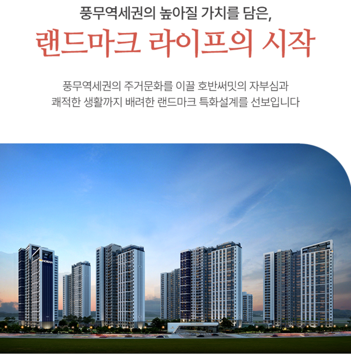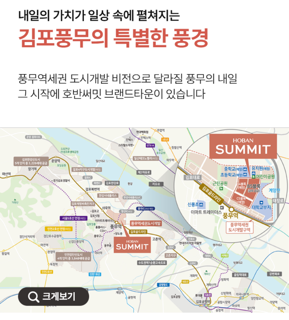 생활 인프라도 눈길을 끈다 단지 인근에는 대형 마트 학교 병원 등이 위치해 있어 생활 편의성이 높고 풍무지구 중심 상권과 가까워 생활 여건이 우수하다 또한 다양한 개발 호재가 예정돼 있어 향후 가치 상승에 대한 기대도 크다