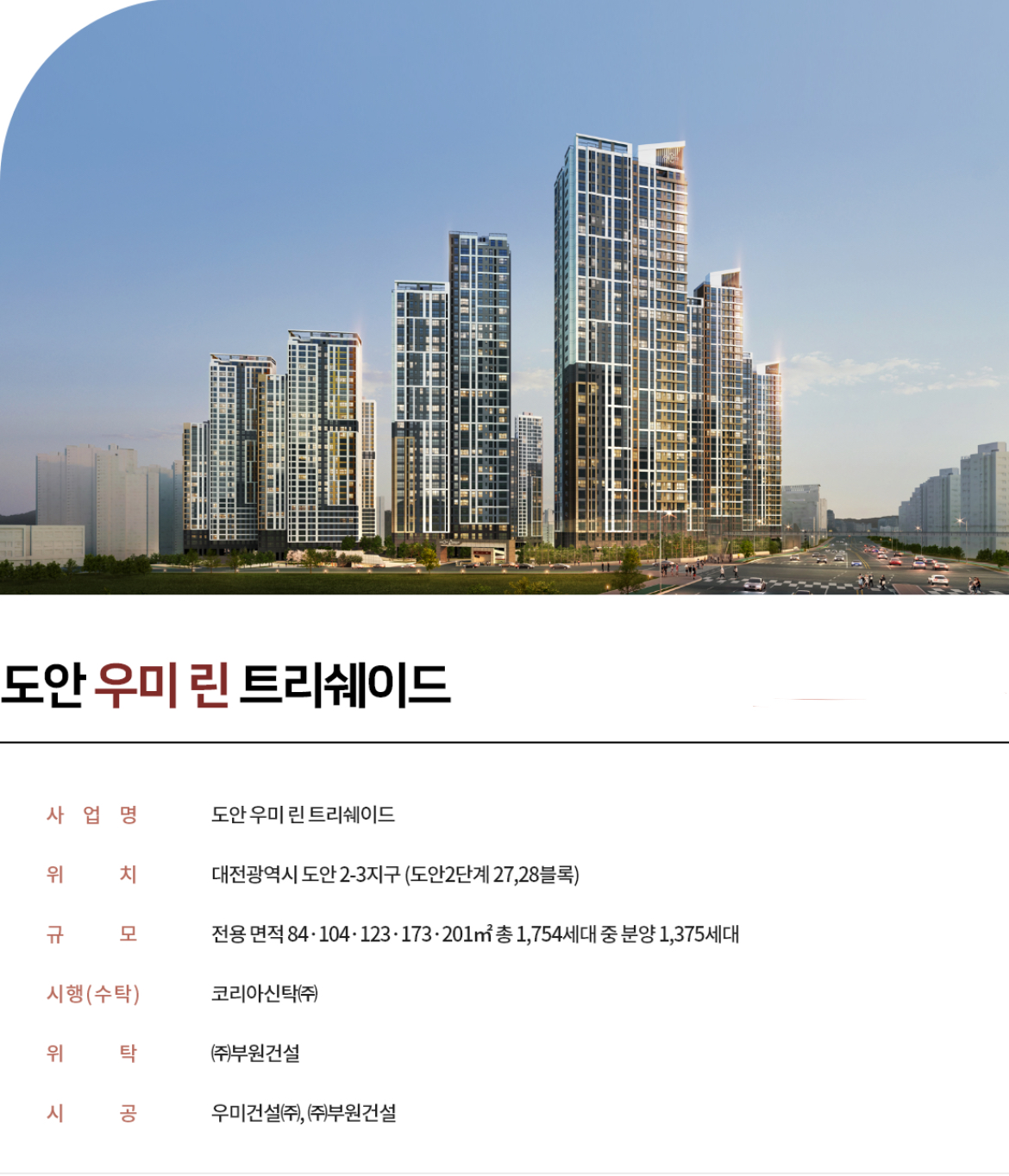 도안 우미린 트리쉐이드 신규 분양 소식이 전해졌다. 이번 공급은 도안 신도시 내 주거 선호도가 높은 입지에 들어서며 실수요자와 투자자 모두의 관심을 받고 있다.
