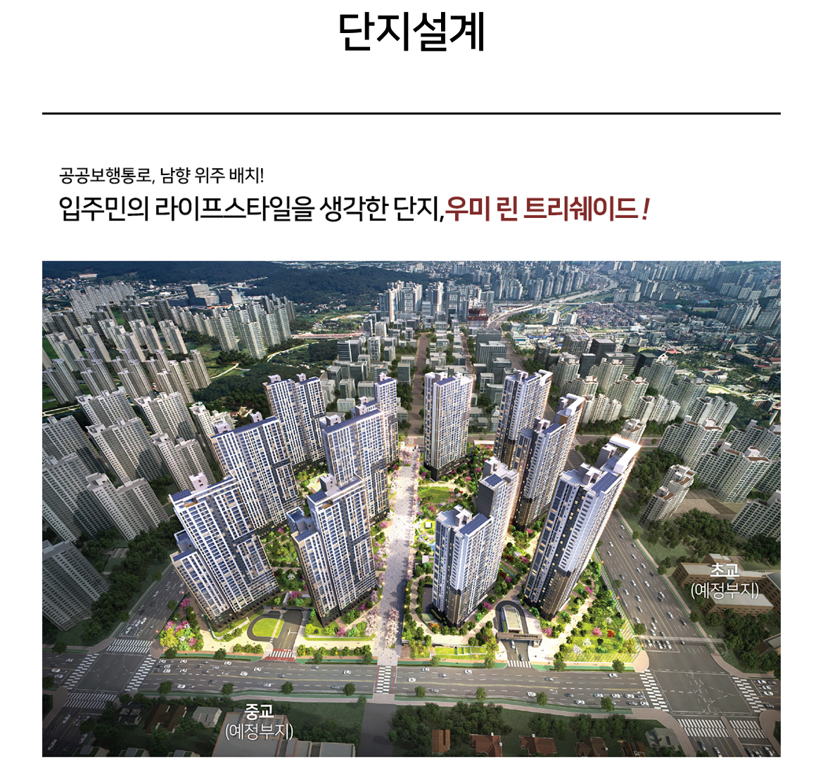 도안 우미린 트리쉐이드는 최신 주거 트렌드를 반영한 평면 설계와 우수한 생활 인프라를 갖춘 것이 특징이다. 단지 주변으로는 학교와 공원은 물론 대형 상업시설과 의료기관이 위치해 있어 교육과 생활 편의성이 뛰어나다. 또한 도안 신도시 특유의 쾌적한 주거 환경과 녹지 공간이 조화를 이루고 있어 가족 단위 수요자들에게 특히 주목받고 있다.