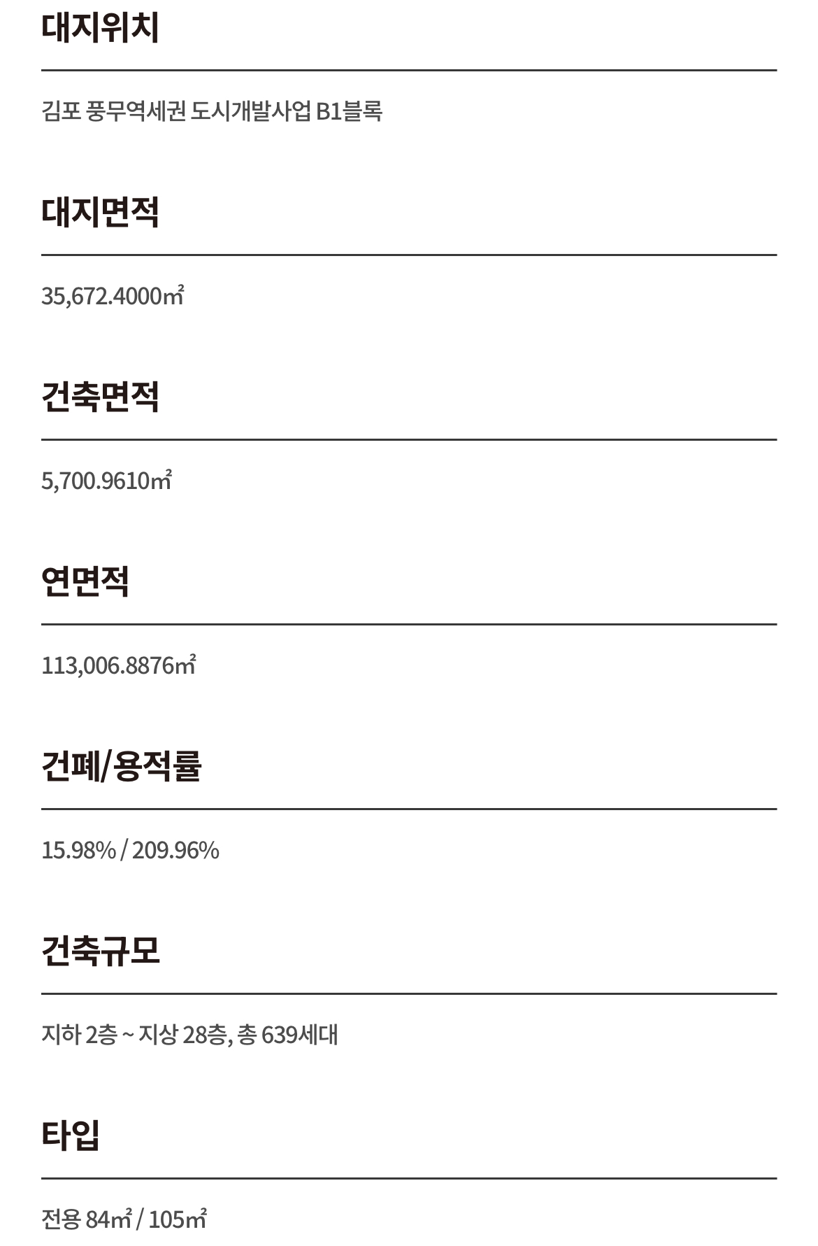 입지 여건은 특히 돋보인다. 김포 도시철도 구간을 통해 서울 주요 지역 접근성이 확보돼 있으며 풍무역 중심 생활권의 기반시설을 누릴 수 있다. 도로 교통망도 탄탄해 자차 이동이 편리하고 인근 풍무 생활권의 상업시설과 교육 시설이 가까워 가족 단위 수요자들의 관심이 집중되고 있다.